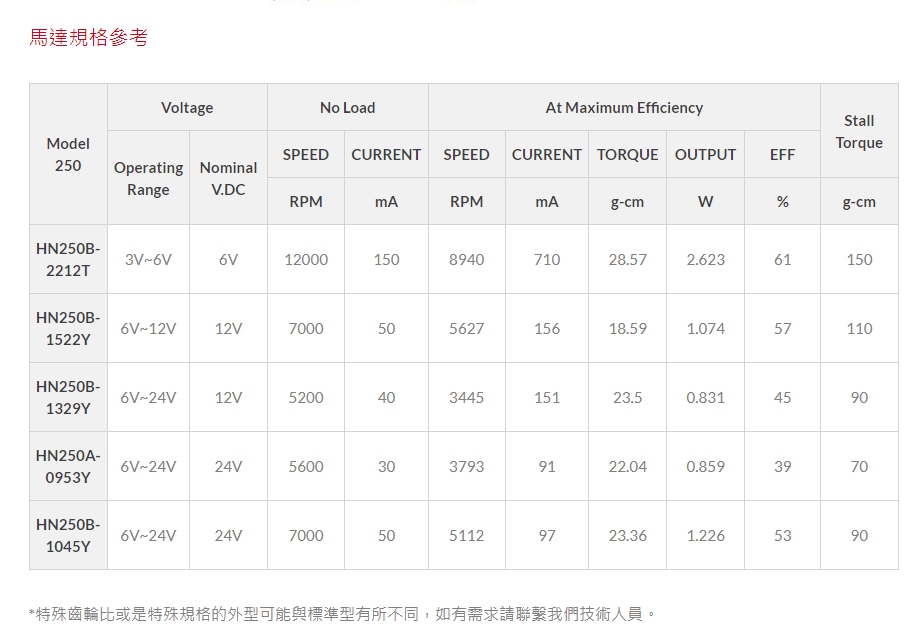 外徑25mm直流馬達 HN250 其適用電壓為3V-24V,可搭配電壓轉換控制器或是減速齒輪箱來應用在各種產品上,HN250系列具有體積小、拆裝便利、控速方便、性能穩定、低噪音等特性,除了本身俐落外型之外,外徑尺寸大小、扭力規格皆可以依照不同產品需求來進行各種微型馬達/中型直流馬達客製化。