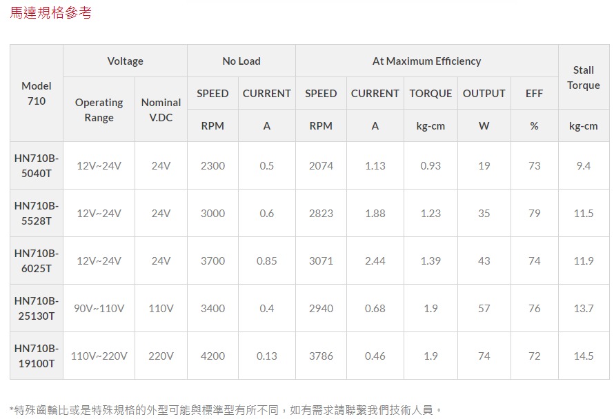 外徑 71mm 中型直流馬達 HN710 具備啟動轉矩高、轉速高、扭力大、高乘載能力等優勢,可選擇電壓12V-220V,且馬達簡約設計其俐落外型使得拆裝簡易、維修更換方便、後勤無煩惱。如需要更大或是更小規格祥能皆可依照外徑尺寸、扭力規格、輸出數據表現來進行特殊馬達訂製服務。